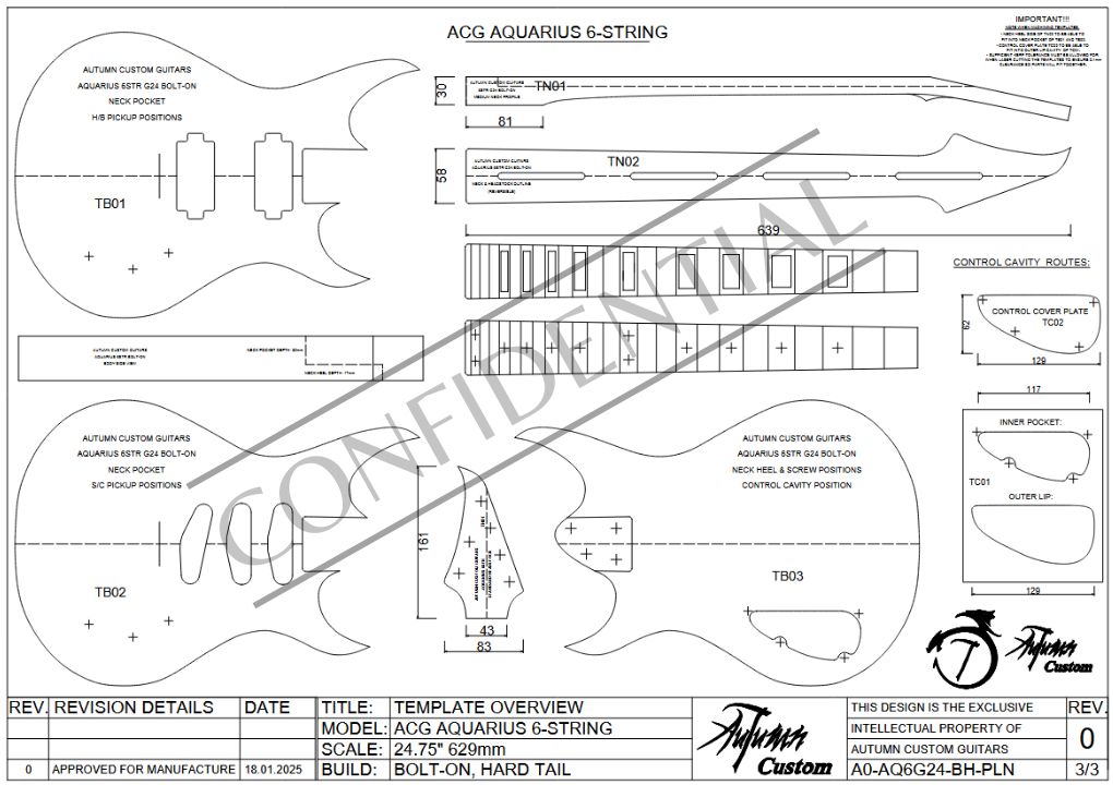 Full scale super-strat electric guitar building luthier blueprint. Build your own custom guitar with this great digital guitar plan. Make your own templates with the included drawings or use the 2D CAD file for CNC or laser cutting.
