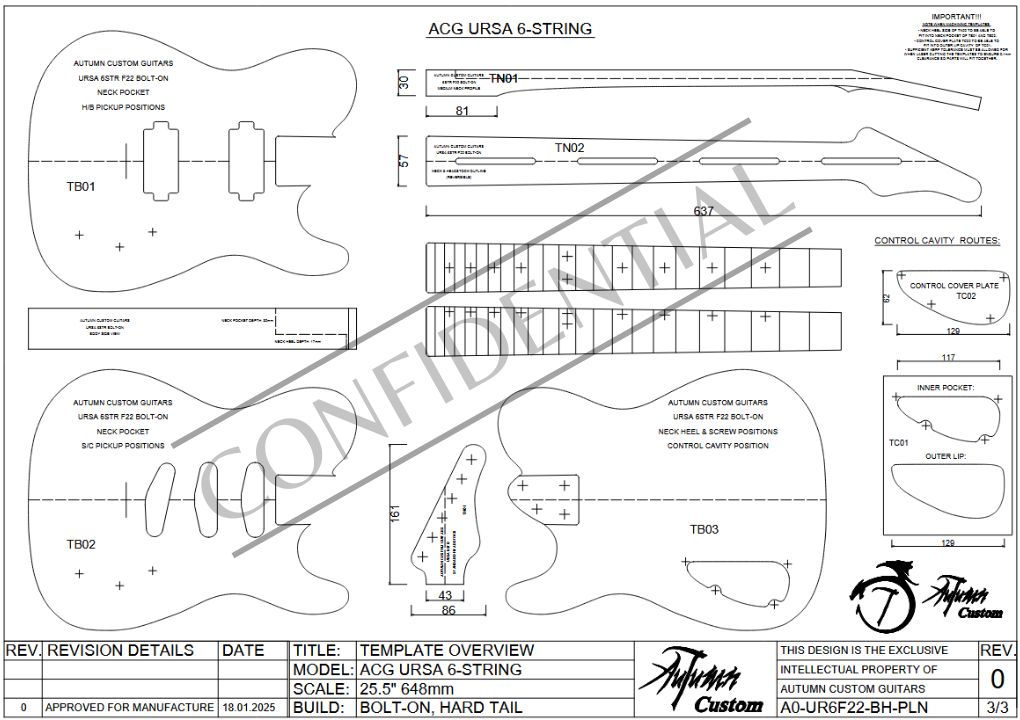 Full scale super-strat electric guitar building luthier blueprint. Build your own custom guitar with this great digital guitar plan. Make your own templates with the included drawings or use the 2D CAD file for CNC or laser cutting.